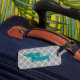 The understated grey backdrop complements the vibrant blue hue, creating a harmonious balance of colour and style. The intricate pattern adds depth and visual interest to the tag, enhancing its overall appeal. Together with the playful dachshund motif, this luggage tag is not only charming but also stylish, making it the perfect travel accessory or gift for any doxie enthusiast.