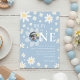 Blue Daisy First 1st Birthday Photo invitation