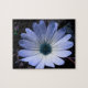 This awesome puzzle features a beautifully detailed photograph of an African daisy flower. The photo has been digitally altered, resulting in a pretty blue coloured flower with different shades of blue on the petals and a dark blue centre.