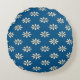 This is a cosy floral design with a playful and timeless charm. The colours are a deep blue background with soft cream daisy motifs. It features a repeating daisy flower pattern evenly spread across the fabric, creating a cheerful yet balanced look. The design has a retro aesthetic with a clean and modern feel, making it versatile for various décor styles. It is perfect for anyone who loves floral patterns, retro-inspired home décor, or simply wants a cosy and stylish round pillow for their living room, bedroom, or as a thoughtful gift.