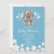 Blue Daisy Teddy Bear Baby Shower Invitation