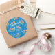 Blue Daisy Vintage Bouquet Pattern Classic Round Sticker. Sweet, feminine, girly, pretty & stylish flowers pattern design by Dreaming Cocoon. Personalise the sticker with your names. You may customise the text 1 - Thank you and the text 2 - Love, with your own words. This pretty floral thank you sticker is a perfect idea for a party favour, personalised gift/parcel and an envelop seal.