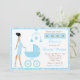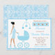 Blue Damask African American Woman Baby Shower Invitation