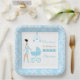 Blue Damask African American Woman Baby Shower Paper Plate