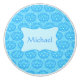 Add a stylish decorative accent for the new baby boy's nursery and announces the baby's gender or birth with this name personalised drawer knob. This design pattern features turquoise blue and light blue damask. A blue emblem has the baby's name. The damask original art by Phyllis Dobbs is very stylish and sophisticated while being a little whimsy. The blue damask design is on a lighter layered shade of the blue. This coordinates with invitations, stickers, other tees and everything you need for a baby shower. Fully customisable.