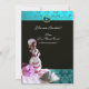 Elegant,classy ,unique design with a seashell bride,pink fuchsia roses and bright aqua blue,teal 3D aquamarine gem stones for champagne metallic paper.You can move gemstone to customise with your initials and place your own text as a announcement card / place cards / save-the-date cards / thank you cards / , bridal showers, birthdays, parties, engagement showers, or just about any event you wish!