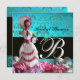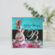 Elegant,classy ,unique design with a seashell bride,pink fuchsia roses and bright aqua blue,teal 3D aquamarine gem stones.You can move gemstone to customise with your initials and place your own text as a announcement card / place cards / save-the-date cards / thank you cards / , bridal showers, birthdays, parties, engagement showers, or just about any event you wish!