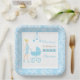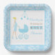 Blue Damask Blonde Woman Baby Shower Paper Plate