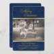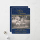 Elegant flat style Christmas greeting card done in blue on blue damask pattern, with graphics of elegant golden text reading Merry Christmas. Gold tone graphics of holly, on the bottom of the card and a gold framed photo area, in the middle. Personalise with your photograph and text, for a truly lovely holiday card.