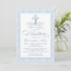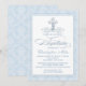 Blue Damask Cross Baptism Invitation