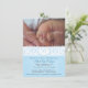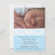 A sweet baptism or christening invitation that shows off your sweet little baby boy. An ornate white band holds a medallion containing baby's monogram. The damask figure is repeated as a watermark against pastel blue on the front and the back. Add customised information against the light blue panel. Additional text may be added on the reverse or just delete the placeholder text to leave the back blank. Appropriate for a baptism, christening or new baby announcement. Available in alternate colours with matching products.