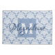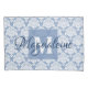 This beautiful pillow case features a classic white damask pattern over a light blue grey background. The design is personalised with a monogram initial letter as well as a customisable name. Perfect for decorating any bedroom, apartment or dorm room. Great gift for a girl going off to college who wants a classic yet elegant style on her bed.