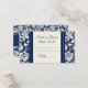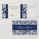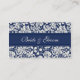 Wedding table place setting cards in elegant dark navy blue and off white cream classic floral damask pattern, also available in many matching wedding products, contact us to request a colour change or custom design.