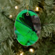 Blue Damselfly on a green leaf. Ceramic Tree Decoration