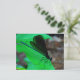 Blue Damselfly on a green leaf. Postcard