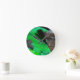 Blue Damselfly on a green leaf. Round Clock