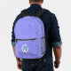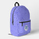 Blue Squiggly squares with monogram backpack. A circle of white squiggly squares holds the initial to personalise your item. Great for back to school, day hike, or just being out and about.
