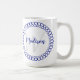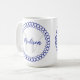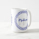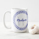 Enjoy your morning coffee or tea with a personalised Blue Decorative Circle Monogram Mug. Mug design features a decorative circle which can be personalised with your name and monogram. Additional gift items available with this design as well. If you need assistance with personalisation, please contact me directly.