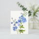 Everyday fine art botanical postcard featuring two blue delphinium flowers spikes. Print is taken from original painting in watercolour by artist Sarah Trett.