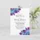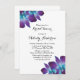 Purple and turquoise blue Dendrobium orchid bridal shower invitation. Simple wedding shower invitation design that features a beautiful orchid variety called a blue dendrobium. It is teal / turquoise in colour paired with violet and royal purple. A great flower choice for peacock bridal shower colour theme.