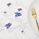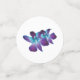 Purple and turquoise blue Dendrobium orchid personalised wedding table confetti. Simple wedding table confetti design that features a beautiful orchid variety called a blue dendrobium. It is teal / turquoise in colour paired with violet and royal purple. A great flower choice for peacock wedding or bridal shower colour theme. You can personalise the bride and groom's names and wedding date.
