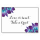 Purple and turquoise blue Dendrobium orchid love is sweet, take a treat wedding sign. Simple wedding sign design that features a beautiful orchid variety called a blue dendrobium. It is teal / turquoise in colour paired with violet and royal purple. A great flower choice for peacock wedding colour theme.