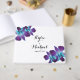Purple and turquoise blue Dendrobium orchid personalised wedding guest book. Simple wedding guest book design that features a beautiful orchid variety called a blue dendrobium. It is teal / turquoise in colour paired with violet and royal purple. A great flower choice for peacock bridal shower colour theme.