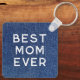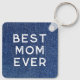 Add your own family photo to this BEST MOM EVER typography blue denim keychain.