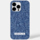 iPhone case featuring a printed blue denim texture and your name in a modern, masculine sans serif font.