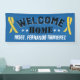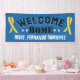Flanked by yellow ribbon graphics you can personalise this blue "welcome home" post-deployment vinyl banner with your returning hero's name for a personalised and long lasting banner that can be used again and again outside and inside.