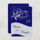 This is an elegant Sweet Sixteen Birthday Party Invitation. It features a faux white diamond swirl embellishment at the top, with the Sweet 16 in glittery silver. The image and text are placed on a dark royal blue background. Your Sweet 16 name is in matching dark blue on a light silver grey banner which is lined in silver. The back of the invitation has plenty of room for your information. Elegant and classy! *Please note - the image is printed and contains no glitter, gem, or metallic substance.