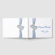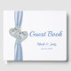 Elegant diamond hearts with a blue ribbon decorate this guestbook. Wedding guest books are fun for both the couple and their celebrants. Invite attendees to leave you well-wishes at your reception, and you're guaranteed to have a keepsake to look back on for years to come. Plus, your guests will get to leave their mark on your event, not to mention put in writing whatever they didn't have a chance to express in person on the big day. Personalise the book by changing the text in the fields provided. You can change font style, size, and colour.
