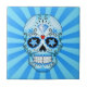 This Day of the Dead sugar skull features a large diamond in the middle of the forehead. Five point stars appear in the middle of the black eyes that are surrounded by simple flower pedals. Spider webs decorate both sides of the skull with swirling lines appearing throughout the pattern. Thick rays of light stretch out in every direction emanating from behind the skull. This traditional sugar skull is a beautiful and stylish Day of the Dead pattern.