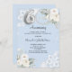 For an elegant and romantic 60th wedding anniversary. A light blue background decorated with white florals, roses, faux diamonds and white lace. Personalise and add your photo, names and details.