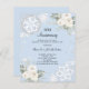 For an elegant and romantic 60th wedding anniversary. A light blue background decorated with white florals, roses, faux diamonds and white lace. Personalise and add your photo, names and details.