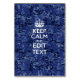 Your personalised Keep Calm saying on a navy blue digital camouflage decor. A personalised Keep Calm style saying on a one of a kind gift. Humourous or whimsical try on your creative words on two editable lines of text. Remember to use CAPITAL letters for best results.
