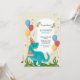 A fun dinosaur birthday party invitation featuring a blue dinosaur holding a birthday cake and wearing a party hat with lots of colourful balloons.(Vector created by freepik - www.freepik.com). The card is easy to customise with your wording, font, font colour, paper shape and choice of paper type. Not exactly what you're looking for? All our products can be custom designed to meet your needs at no extra charge. Simply contact us at heartfelthelper@gmail.com. Coordinating products available: Just ask us!"