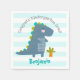 Add some extra style to your kindergarten boy’s celebration with these personalized paper napkins! A fun, whimsical, playful visual of a cute, bold, kawaii, navy blue t-rex, and fun, handwritten typography over a light turquoise blue and white striped background, honors the kindergarten grad. Add love and joy to your party whenever you use this simple, modern, and whimsical, personalized paper napkin. Personalize the custom text with your graduate’s name and special message. Your choice of 3 sizes: cocktail, luncheon or dinner. Matching invites, banners, welcome foam boards and other graduation goodies are also available in this special and fun collection. This charming paper napkin is guaranteed to set just the right tone at their special party!