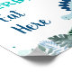 This adorable table sign would be a great addition to a dinosaur themed birthday party. The design features a blue dinosaur with tropical watercolor leaves.
