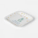 Blue Dinosaur Twinkle Star Baby Shower Boy Party Square Paper Plates - Adorable and cute plates featuring a blue dinosaur surrounded by stars. All the texts are pre-arranged for you to personalise easily and quickly with your details.