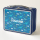 A fun and vibrant kid’s school lunch box featuring colourful dinosaurs on the front, bringing lunch time to life with T-rexes, triceratops, and more in playful hues. It includes a custom space to add the student’s name, making it easy to identify and perfect for young dino lovers!