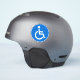 Round stickers featuring the classic disabled symbol, a man in a wheelchair on a blue background.