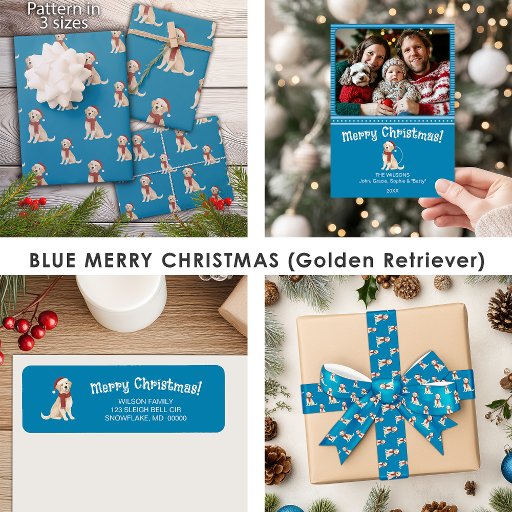 Add a cheerful finishing touch to your holiday presents with this festive blue Christmas gift tag featuring a playful golden retriever illustration wearing a Santa hat and red scarf. The bright blue background and whimsical design make every package stand out under the tree, while the “To” and “From” fields keep your gifting personal and practical. Perfect for pet lovers and families who enjoy adding a touch of fun to their wrapping. A joyful and charming addition to holiday packages, stocking stuffers, and gift exchanges.