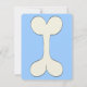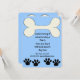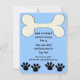 A cute birthday invitation perfect for little boys who love dogs. It features a bone at the top and dog paw prints at the bottom. The background is a light blue. The text is customisable.