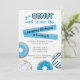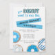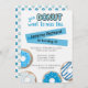 This charming blue donut birthday invitation features a fun, modern design perfect for kids who love sweet treats. The layout highlights illustrated donuts decorated with blue frosting, sprinkles, and soft neutral accents, creating a cool, cheerful aesthetic. Playful mixed typography combines bold donut-patterned lettering with a friendly handwritten-style script for a lively, whimsical feel. Layered blue text bars add a trendy, contemporary touch that makes the birthday details pop. Ideal for donut-themed parties, sweet shop celebrations, or any fun and colorful birthday event.