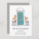 Charming and modern moving announcements let friends and family know about your new home sweet home! Design features a sketched blue door illustration framed by bricks, with "come and knock on our door" beneath. Personalise with your new address and family name or names.