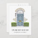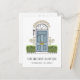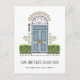Charming and modern moving announcements let friends and family know about your new home sweet home! Design features a sketched light blue door illustration flanked with green bushes, with "come and knock on our door" beneath. Personalize with your new address and family name or names on the reverse side, with space for recipient addressing.