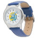 Watch with illustration of cute purple and yellow dragon girl / fairy-tale design for kids in blew circle , design for kids by Maxi Harmony,