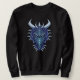 Cool blue dragon sweatshirt featuring a digital illustration of this cool magical creature's head with horns in purple and blue colours over dark blue background.