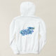 This hoodie has a colourful and detailed dragon on front and back in shades of blue and purple surrounded by blue water splashes. The perfect hoodie to warm you up after a dragon boat race.
